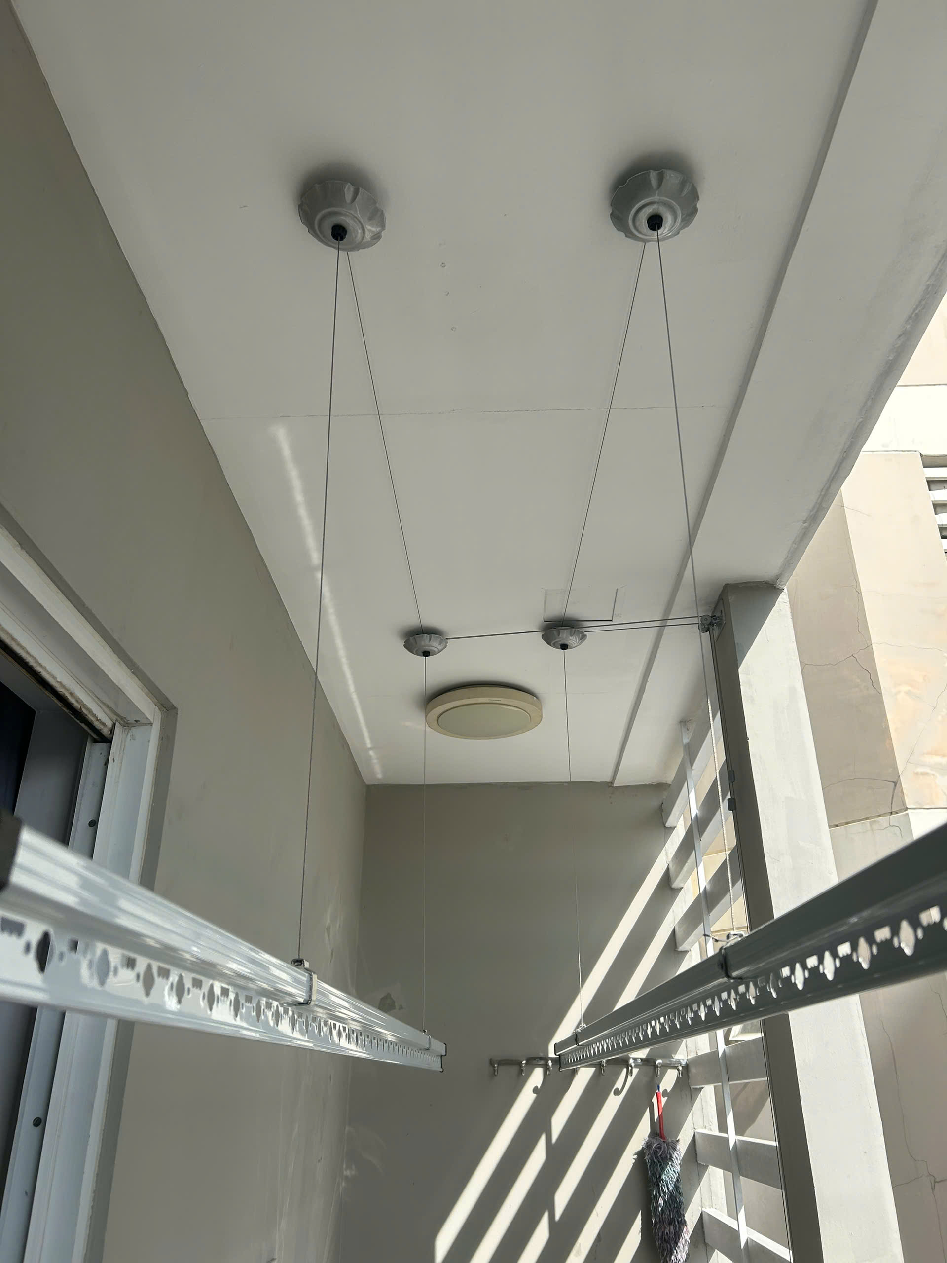 - Puli chuyển động: Dẫn hướng dây cáp từ bộ tời tới thanh phơi. Các puly được gắn trên trần giúp cho giàn phơi hoạt động nhẹ nhàng và giảm sức nâng. Nguyên liệu chính tạo nên Puly là các vòng bi bằng đồng và hợp kim chống gỉ sét.